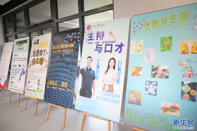 北京四中雄安校区的部分选修课展板。新华网 王立鹏摄