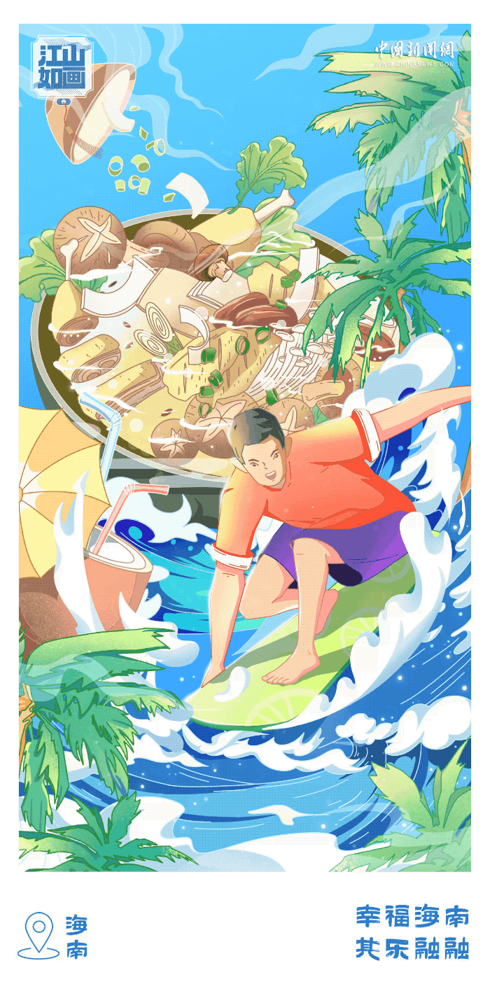 海南是浪漫的,阳光海岛碧海蓝天,椰影摇曳;海南是古朴的,黎族文化传承沉淀,源远流长;海南更是活力的,航天发射探索宇宙,创新发展。这里的点点滴滴无一不在诉说着海南的美。和风熙日,三千里海岸树影婆娑,一同走进大美海南画卷,感受无数人为之向往的热带天堂。