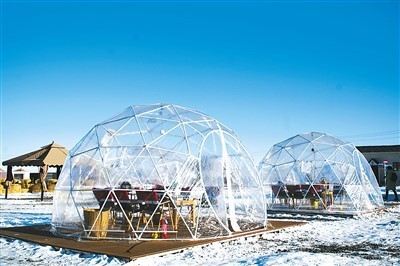 “今年雪季到来前,我们就把营地的普通帐篷换成了可以供暖聚热、观赏室外景色的泡泡屋,准备迎接游客。”趣野文创园创始人周成告诉记者,即使室外气温低至零下十几度,泡泡屋内的气温也能保持在25度左右,游客不仅可以在屋内休闲,还可以眺望远处披挂雪甲的博格达峰风光。