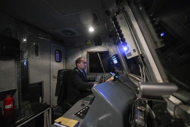 1月23日凌晨,在哈尔滨开至抚远的K7065次列车上,机车司机乔树海在驾驶室内忙碌。
