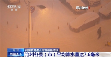 昨天早晨至21时,河北沧州市区降水量达16.2毫米,沧州各县(市)平均降水量达7.6毫米,肃宁国家站最大达16.7毫米。