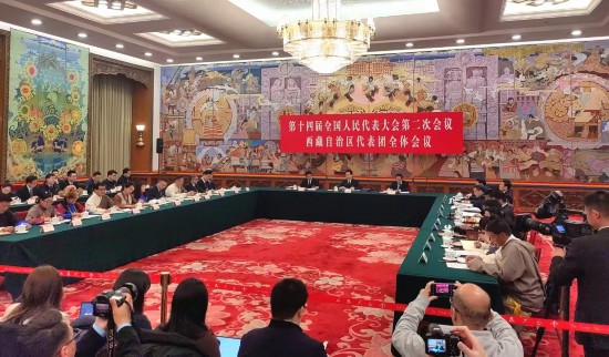 “西藏有大大小小1500多个湖泊,‘措’在藏语中就是湖泊的意思,游客常开玩笑说,这一路上,总是一‘措’再‘措’。”3月6日下午,出席十四届全国人大二次会议的西藏代表团举行开放团组会议,全国人大代表、西藏自治区主席严金海打趣地说。