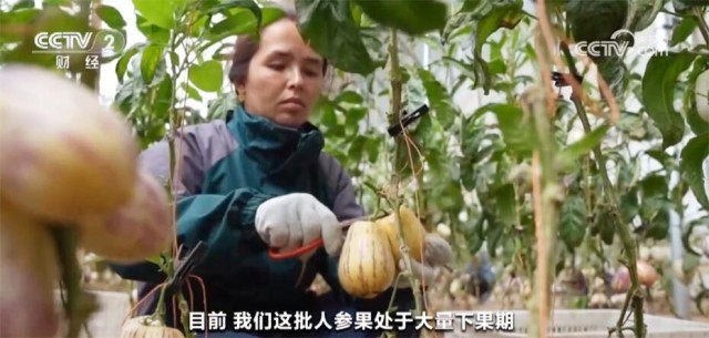 和田县万亩设施农业种植基地技术员施坤年称:“每亩的经济效益在8万元到10万元。目前,我们这批人参果处于大量下果期,可持续到6月份。”