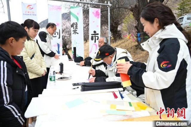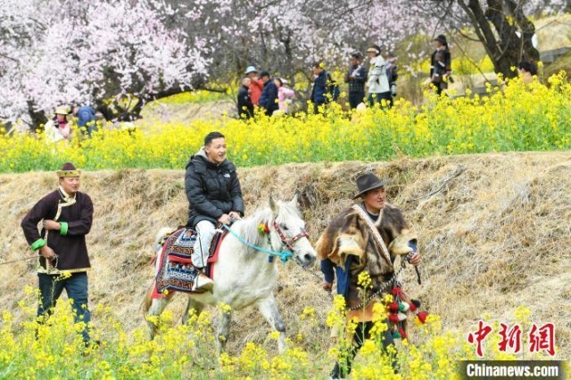嘎拉村享有“桃花村”美誉。当日,嘎拉村游人如织。在这里,游客可以体验工布响箭、骑马等民俗活动,藏装旅拍、户外咖啡也丰富了游客的观景体验,还有书法家在文创集市现场创作公益书法作品赠送游客。