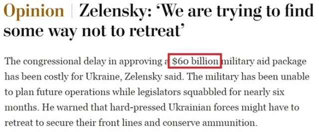 在接受《华盛顿邮报》采访时,泽连斯基直接警告,美国国会推迟批准对乌600亿美元援助,导致乌军在近六个月里无法规划未来的行动,今后可能不得不节节撤退。