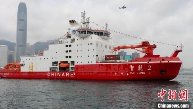 中国第一艘自主建造的科考破冰船“雪龙2”号首度访问香港。中新社记者 戴小橦摄