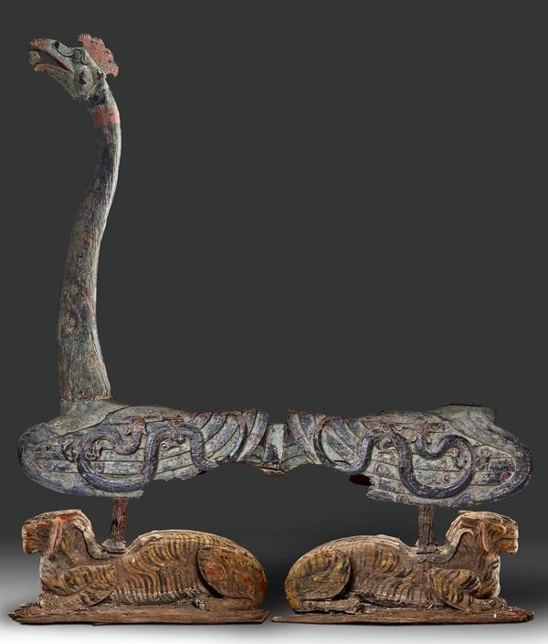 武王墩一号墓出土的凤鸟虎座鼓架。