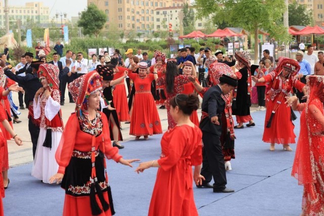 (图为在克州阿克陶县各民族欢乐共舞 马倩妮摄)
