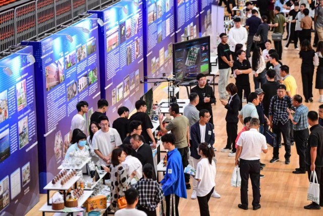 在沈阳市沈阳农业大学禾丰体育馆举办的辽宁省高校科技成果转化对接大会现场(2023年9月摄)。新华社发