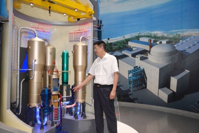 5月24日,在位于成都的中国核动力研究设计院内,钟元章在介绍“华龙一号”模型。
