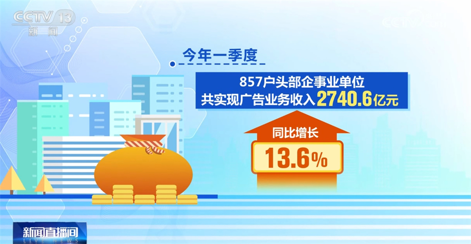 《报告》显示,今年一季度,857户头部企事业单位共实现广告业务收入2740.6亿元,同比增长13.6%。我国广告业增长强劲,市场信心持续回升。