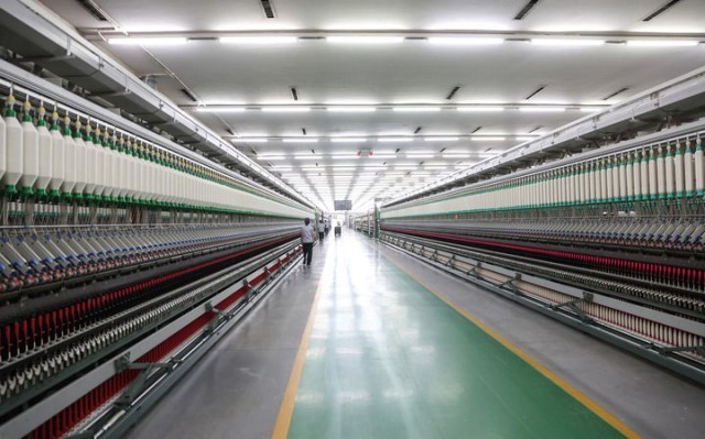 工人在位于江苏省无锡市的无锡一棉纺织集团有限公司特高支紧密纺智能制造车间里工作(2024年6月2日摄)。
