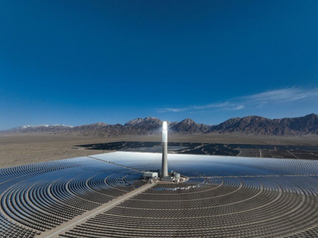 在青海省海西蒙古族藏族自治州德令哈市光伏(光热)产业园拍摄的光热电站(2024年4月23日摄,无人机照片)。