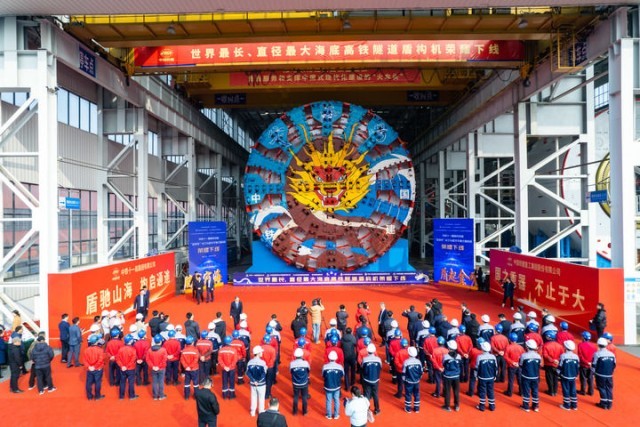超大直径盾构机“定海号”在铁建重工长沙第一产业园顺利下线(2024年1月10日摄)。