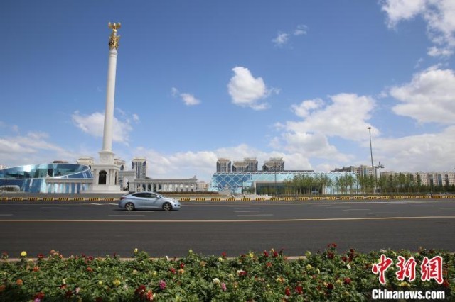 当地时间7月1日,干净整洁的哈萨克斯坦阿斯塔纳市区街道。 中新社记者 单璐 摄