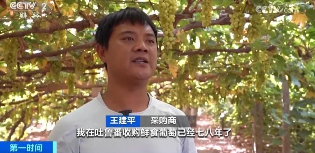 采购商 王建平:我在吐鲁番收购鲜食葡萄已经七八年了,吐鲁番的葡萄熟得早、品质好、糖度高,今年打算收购两千吨左右。