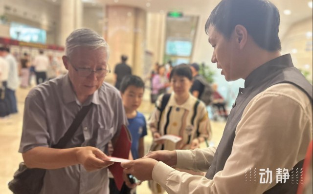 实际上,在演出开始前,热闹的氛围已经到来,不少观众提前排队等候检票。戏迷韩继华说:“我是‘二刷’,此前在上海演出我就看过,这是一部哲学戏,有些唱段令人醍醐灌顶,这次长安大戏院一放票我就抢了票。”