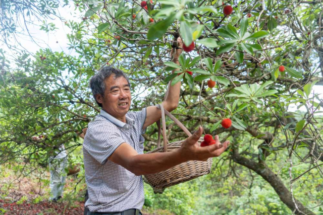 仙居县的果农正在采摘杨梅。(仙居县委宣传部供图)
