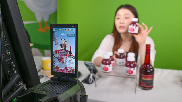 主播在浙江台州仙居神仙大农白塔旗舰店直播带货仙居杨梅汁(7月27日摄)。新华社记者 李贺 摄