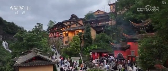 沿着灵山山脉向东北行进,穿过重重山丘,一座架着悬空楼阁的山峰映入眼帘。这里便是隐于山林间的上饶望仙谷景区。