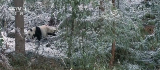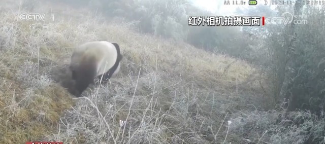 视频中,有些野生大熊猫在冰天雪地里匆匆赶路觅食,有些在倒立撒尿标记领地,有些则在吃竹子。工作人员还惊喜地发现,布设在周至保护区光头山区域的同一台红外相机,在7个月时间里,居然每个月都有秦岭野生大熊猫从镜头前经过。其间,还有羚牛、金钱豹等动物频频亮相。