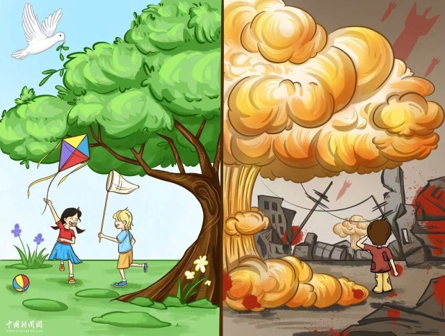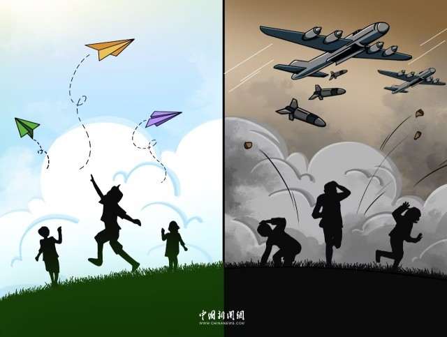 明年的今天,孩子们是否能在大树绿荫下奔跑嬉戏,比谁的纸飞机飞得更远?还是仍在炸弹阴云下奔跑求生,比谁躲避空袭的炮弹更快?