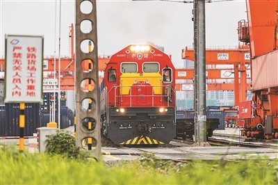 近日,在重庆国际物流枢纽园区,一列装载机械设备、汽车和笔记本电脑的中欧班列从重庆团结村中心站驶出。新华社记者 黄伟摄