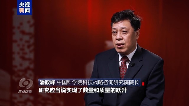 中国科学院科技战略咨询研究院院长 潘教峰:我们进入创新型国家行列,研究应当说实现了数量和质量的跃升,整个科技呈现出上天入地下海、宏观微观贯通、顶天立地结合的一个生动局面。