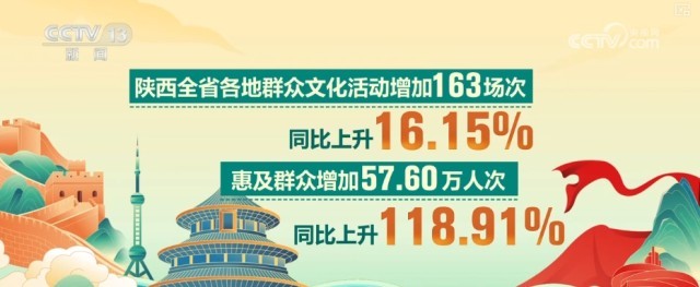 陕西全省各地群众文化活动增加163场次,同比上升16.15%;惠及群众增加57.60万人次,同比上升118.91%。
