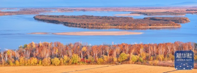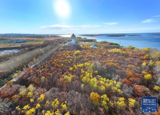 10月13日拍摄的黑龙江同江三江口生态旅游区秋景(无人机照片)。