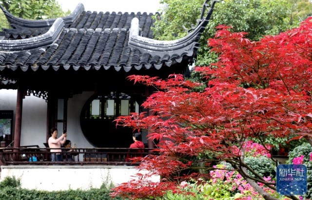 10月20日,游客在江苏苏州留园赏景游玩。