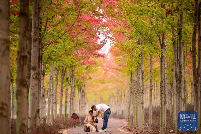 10月15日,游客在河南省洛阳市宜阳县滨河公园游玩。