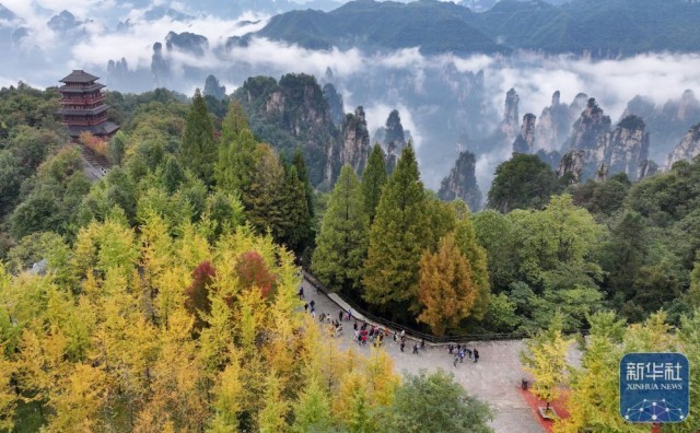 10月14日拍摄的湖南张家界国家森林公园天子山秋景(无人机照片)。