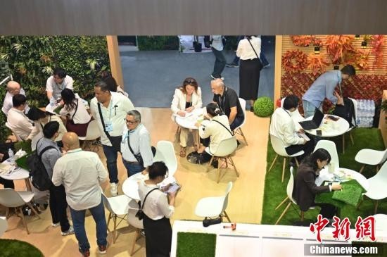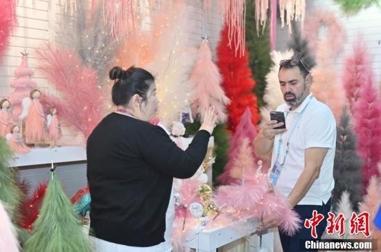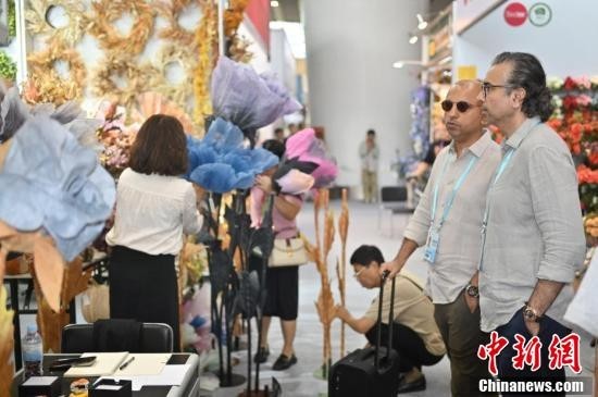 第136届广交会第二期的园林用品展区吸引采购商(左)咨询洽谈。