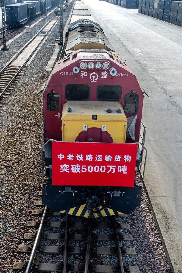 这标志着自2021年12月3日全线开通运营以来,中老铁路货物运输总量突破5000万吨大关,其中跨境货物1158万吨。2024年,中老铁路运输货物总量达1960万吨,日均保持在5万吨以上。