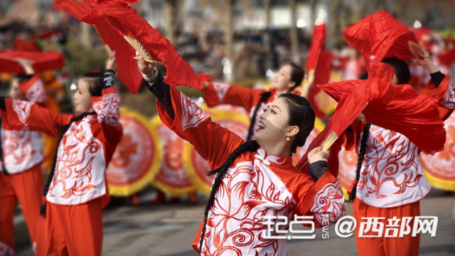 西部网讯(记者 李卓然 杨晏宁)“咚咚锵!咚咚锵!”……喧天的锣鼓敲起来,灵动的彩绸甩起来,热闹的秧歌扭起来。2月1日农历大年初四,伴随欢快的锣鼓声,2025全国秧歌展演在榆林市精彩呈现。