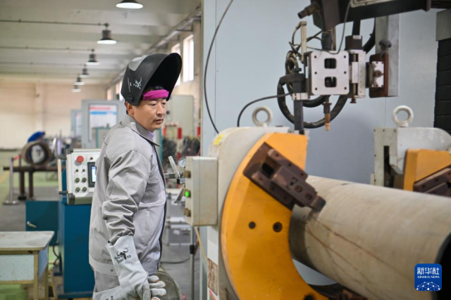 在中石化第四建设有限公司工匠学院,张振连操作自动焊机(2025年2月21日摄)。