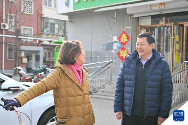 在天津市滨海新区大港街道建安里第一社区,张振连(中)听取居民建议(2025年2月21日摄)。