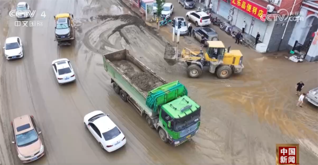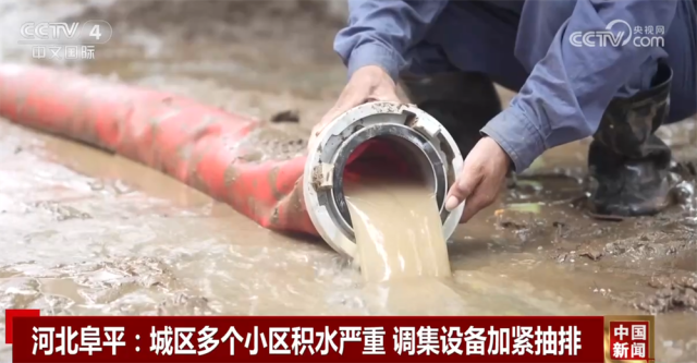 河北阜平:城区多个小区积水严重 调集设备加紧抽排
