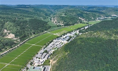 绿意盎然的南泥湾,千亩稻田秧苗已进入抽穗扬花期,放眼望去,与四周的青山、湿地相互映衬,黄土高原上,一片好风光。