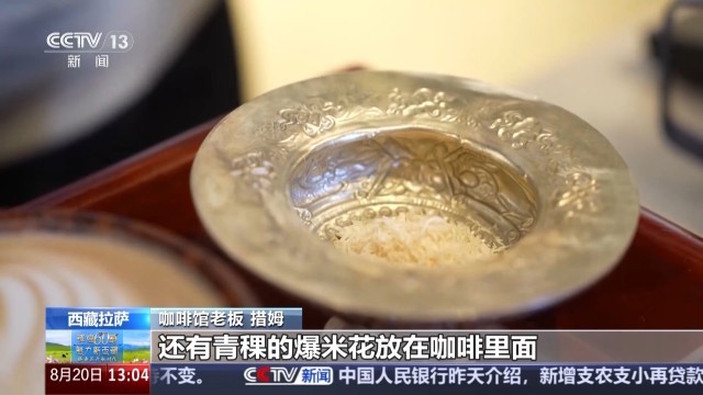 咖啡馆老板 措姆这款是我们店里面卖得最火爆的一款原创产品——拉萨拿铁,我们准备了牦牛奶的奶渣、酥油、青稞的爆米花放在咖啡里,让客人体验到西藏本地食材和咖啡融合的感觉。