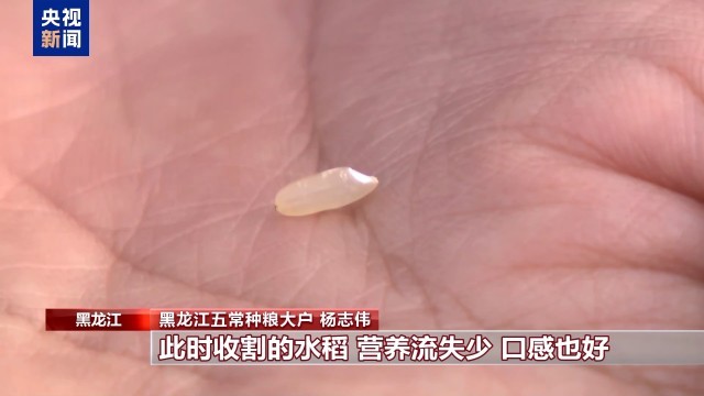 黑龙江五常种粮大户 杨志伟:我们掐准了水稻九成熟的时候收割,此时收割的水稻营养流失少,口感也好,大约减少5%左右的田间损失。这项“6步鲜”技术,把大米的品质提升了一大截。