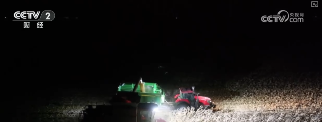 在同江市青河镇东明村的玉米地里,大型玉米收割机开足马力,在黑夜中加紧作业。气象部门预测48小时内会有大范围雨雪降温天气,种粮户立即组织抢收。