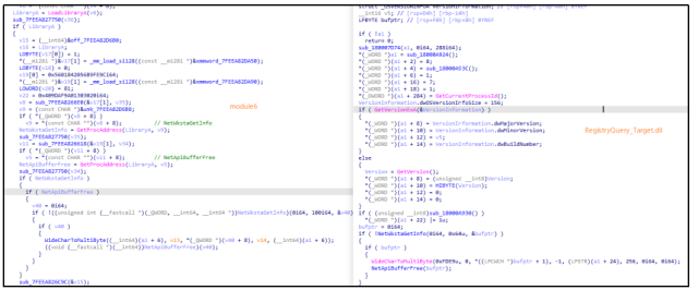 图 module6(左)与RegistryQuery_Target.dll(右)代码同源性对比