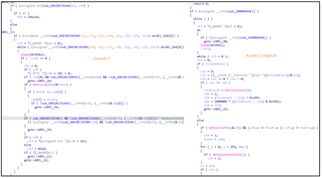 图 module11(左)与Activity_Target.dll(右)代码同源性对比