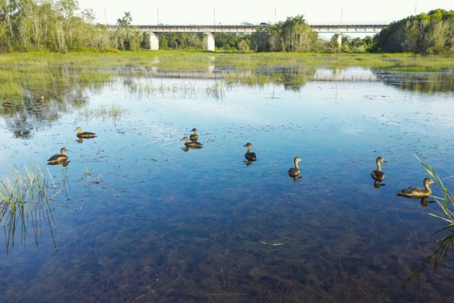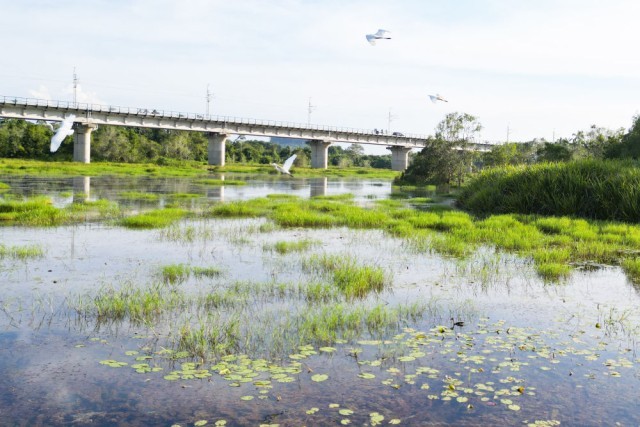 走进马来西亚彭亨州的马东铁项目建设现场,一幅人与自然和谐共生的画卷徐徐展开:笔直的铁路在茂密雨林中延伸,钢铁轨道穿越湿地秘境,数公里长的桥梁横跨原野,隧道出口处绿意盎然,盘旋的鸟儿以及嬉戏的野鸭相映成趣……一幕幕工程与自然交融的生动图景让人印象深刻。