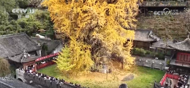 眼下,在陕西西安秦岭脚下,一棵千年古银杏迎来最佳观赏期,金黄的银杏叶让秋天变得温暖。