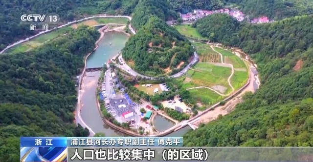 浦江县河长办专职副主任 傅克平:像这样比较大的,人口集中的区域,我们就设计成大的亲水圈;如果是小的就设计成小的亲水圈。浦阳江和壶源江两条“绸带”作为线串起来,形成“大珠小珠落玉盘”这样的共同发展。