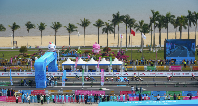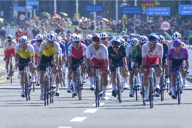 在最受瞩目的男子个人赛上,231.8公里的赛道如一幅徐徐展开的大湾区长卷,让运动员在竞技中穿行于“一边是都市天际线,一边是碧波万顷”的独特景致中。