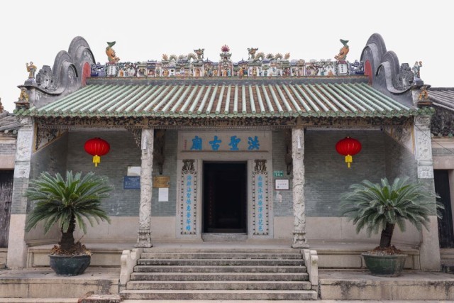 11月11日,广州市花都区炭步镇茶塘村洪圣古庙屋脊上的鳌鱼装饰。新华社发(骆紫媚 摄)